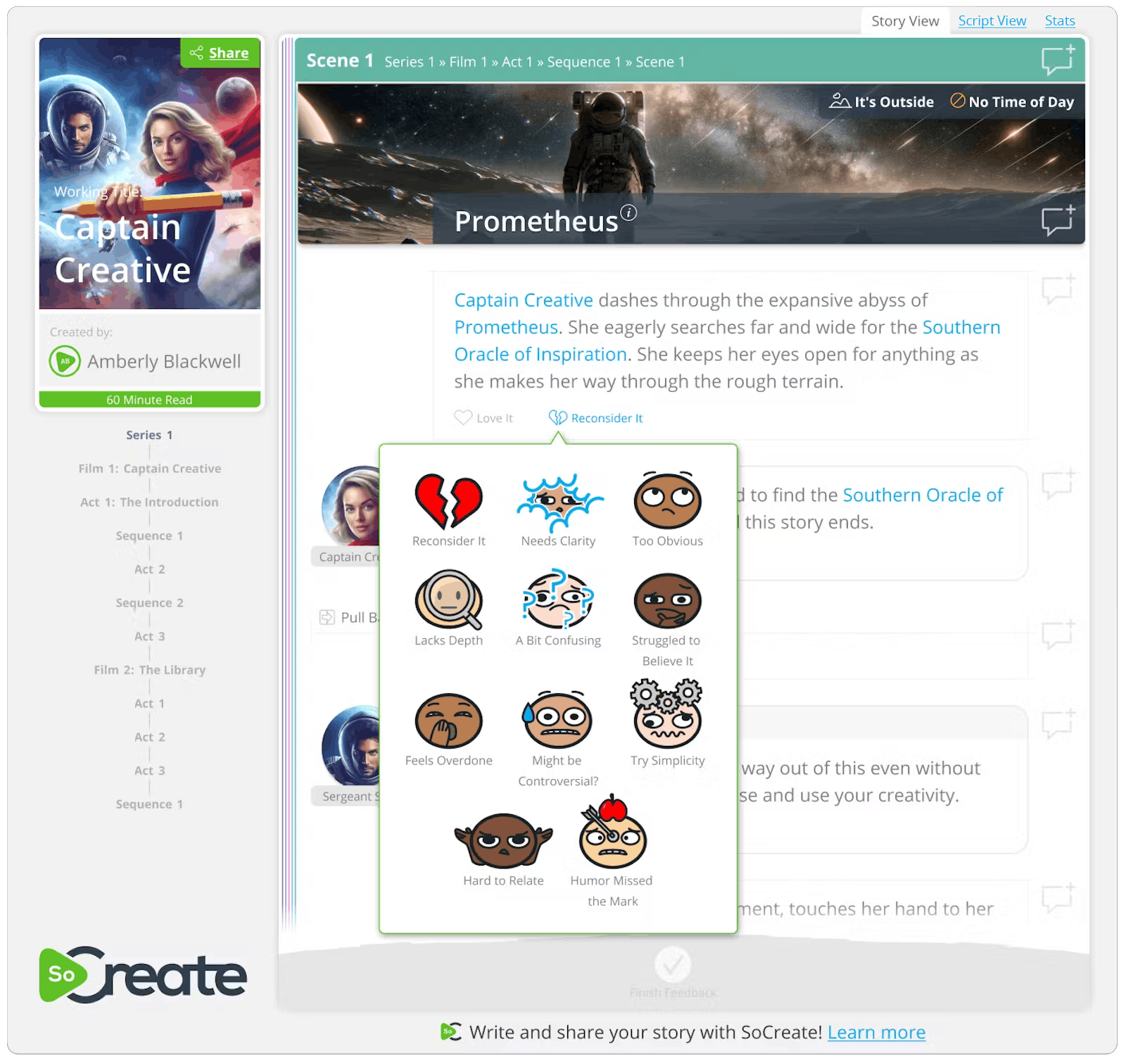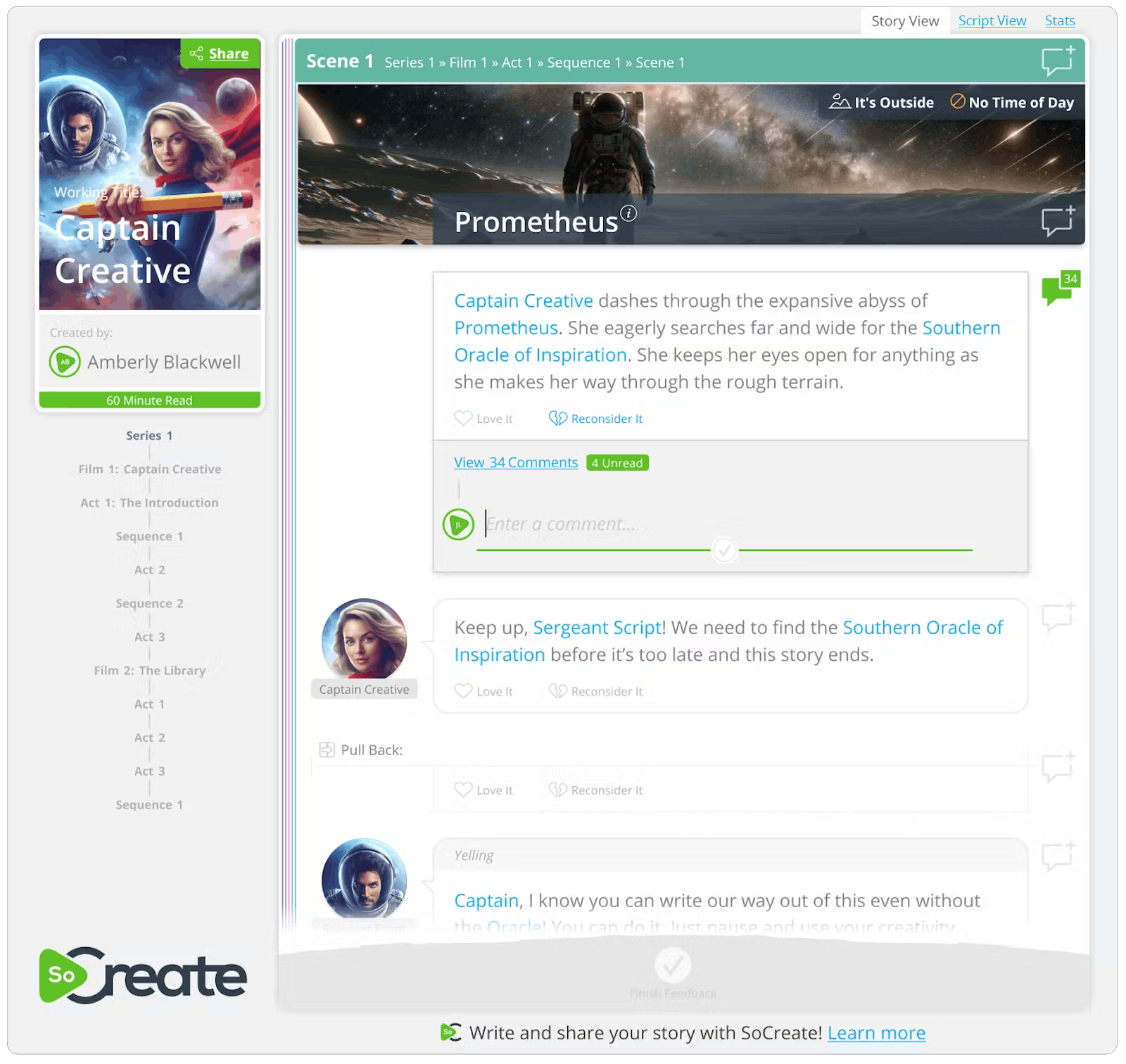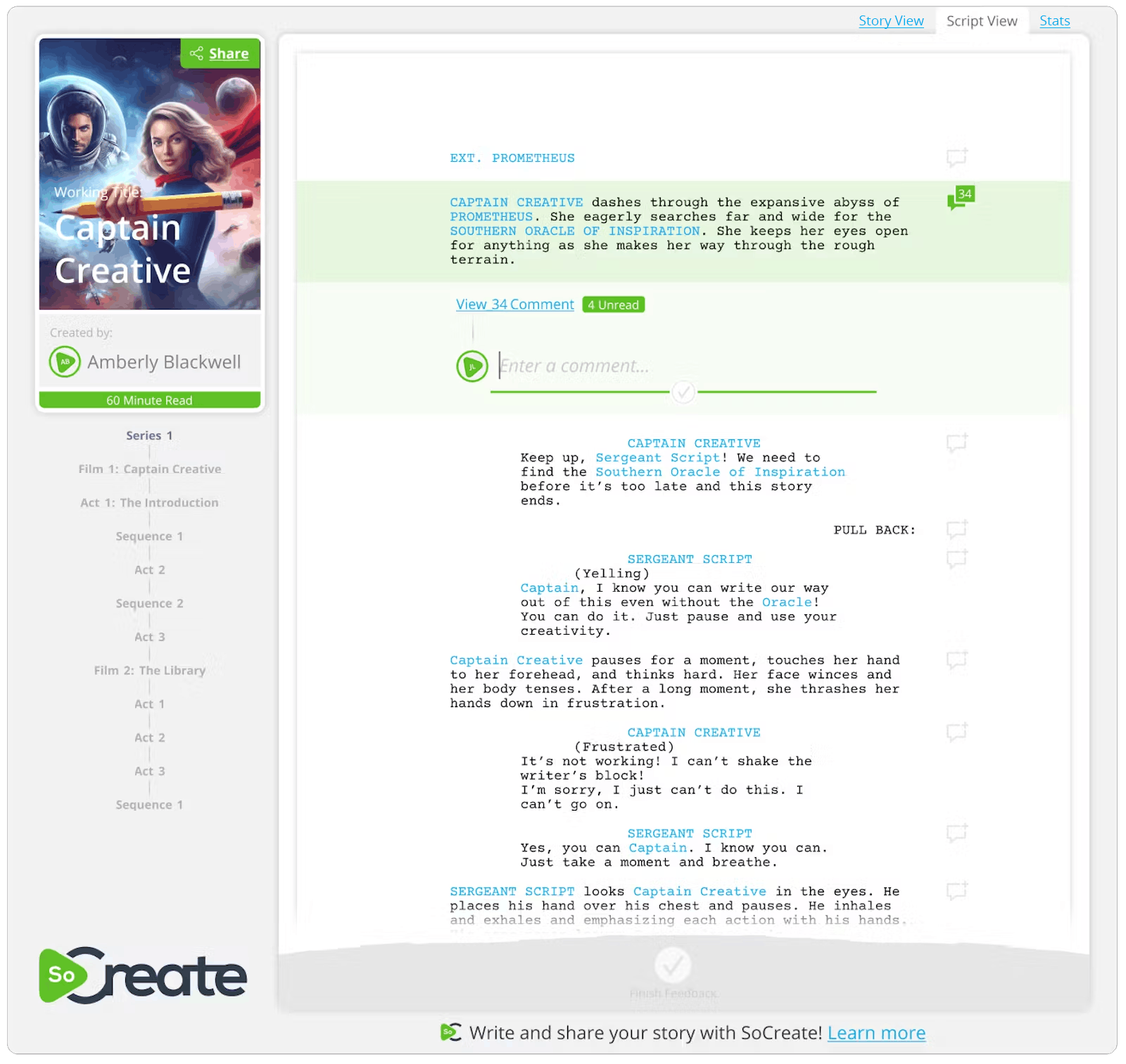 SoCreate is so much more manageable than a traditional script. I always know where I am. My brain works less hard on the things that don't matter to my story. I was manually doing all this work before, and now it's just boom, export, done.