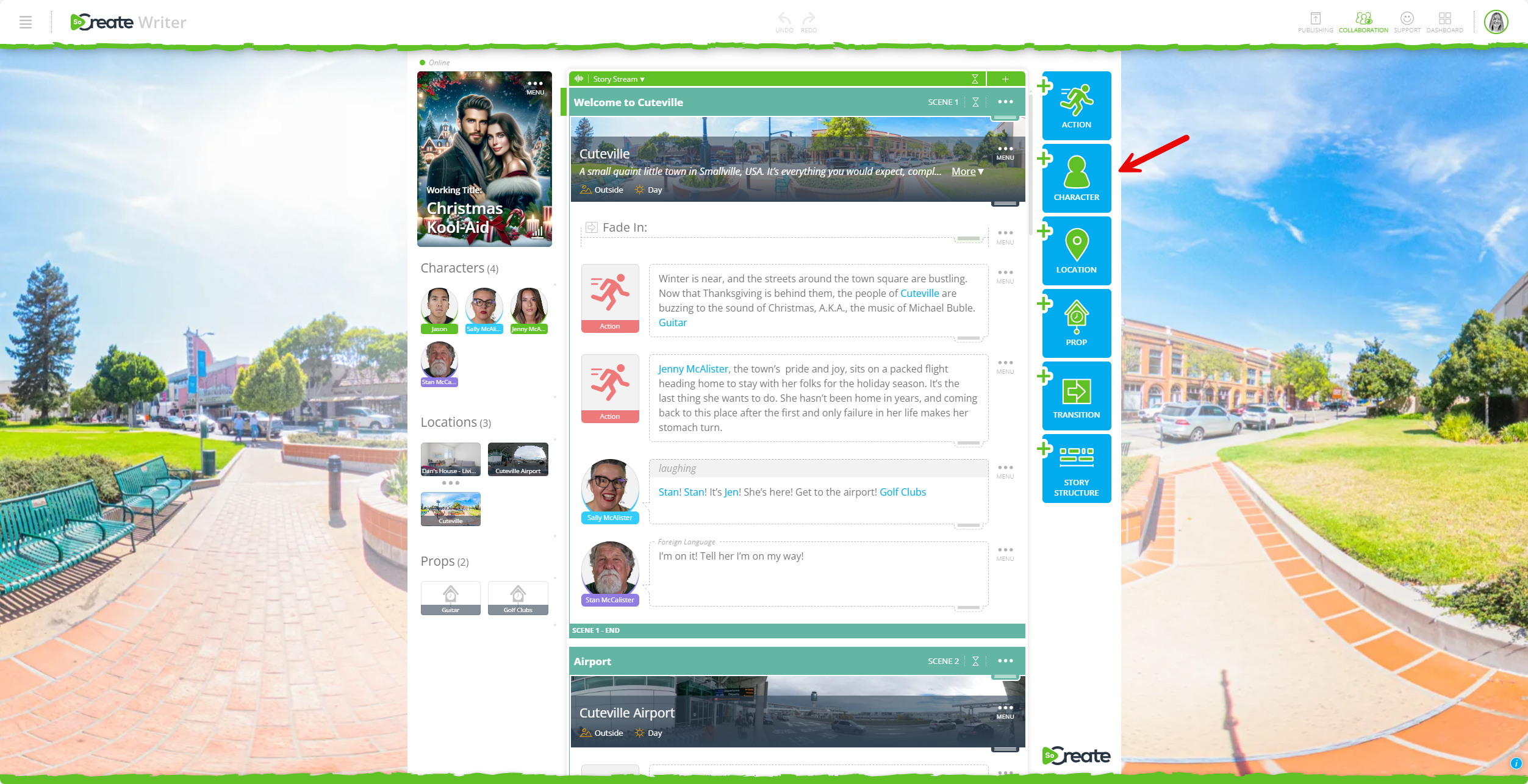 সোক্রিয়েট রাইটার খুলুন এবং ডান দিকের 'অ্যাড ক্যারেক্টার' বাটনে ক্লিক করুন।