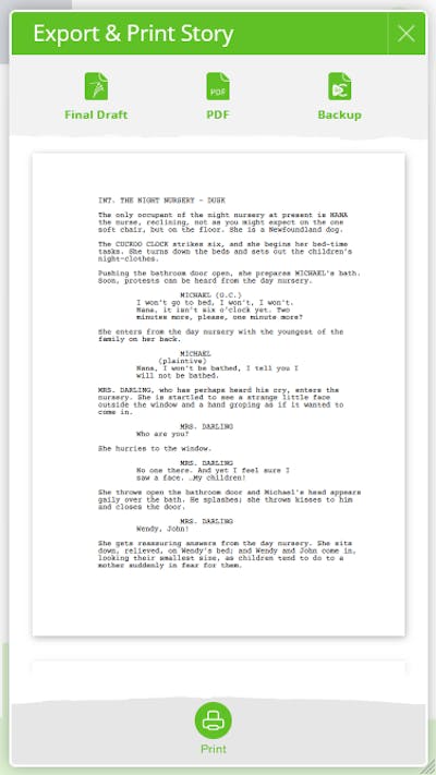 When it comes time to sell your story, simply export it to the traditional screenplay format with one click. Instantly, it's ready for review, sale, and production for any buyer at any time!