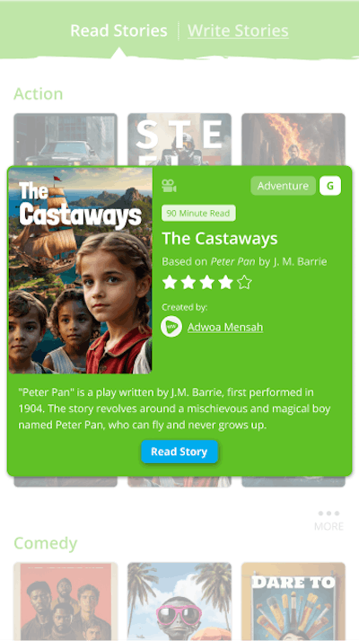 Your story is now live! Showcase your creative vision to the world, where viewers can explore stories by genre, title, or ratings.