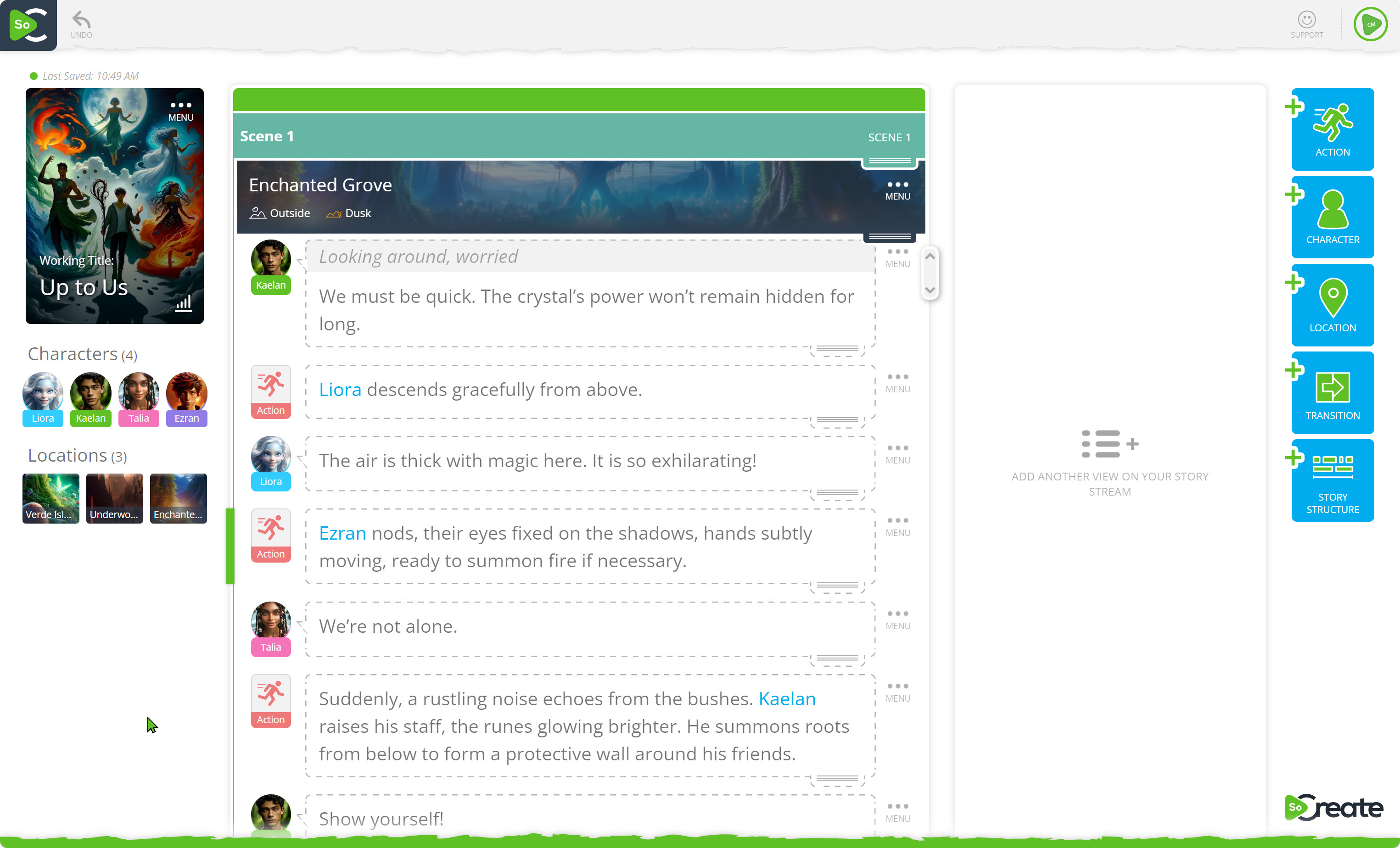 One of SoCreate’s unique features is its visual approach to storytelling. Writers can add images, character sketches, and scene visuals, making it easier to visualize and enhance their stories.