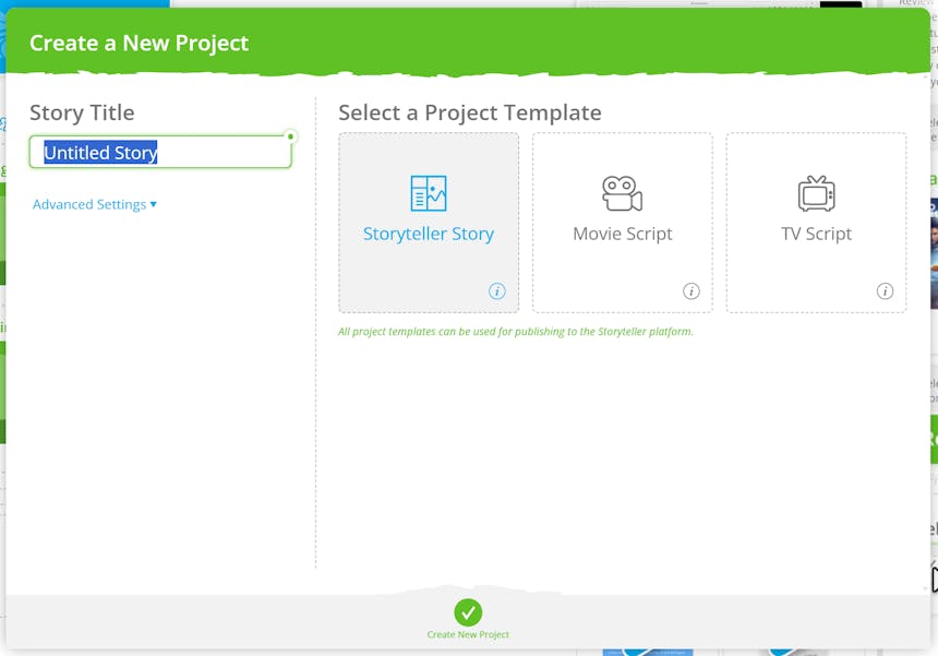 Once you have clicked Create Project, you will be presented with a field name your story. Not ready to lock in a title? You can leave it blank and rename it later when the right idea comes along.
