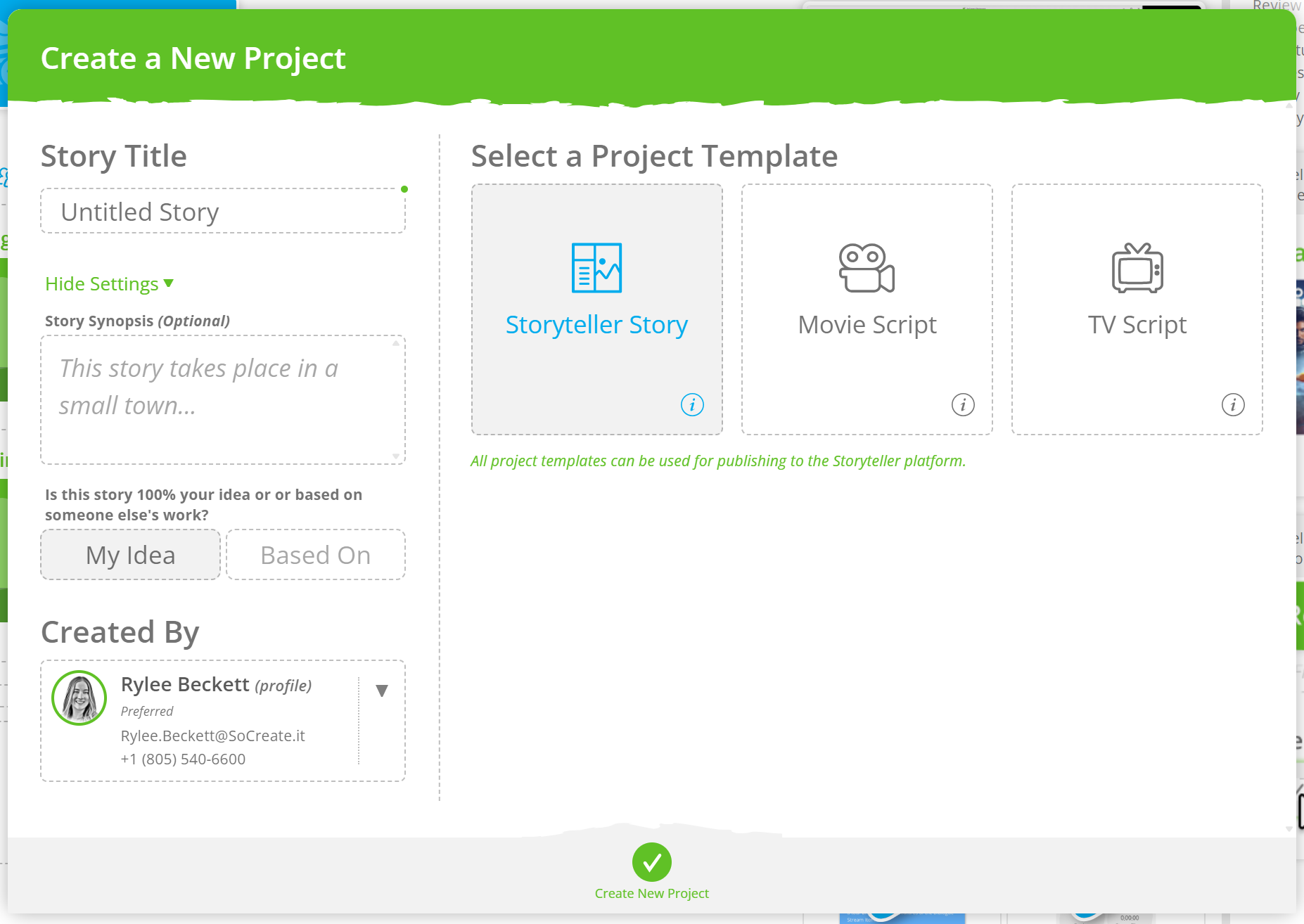 All project templates can be published to the SoCreate Storyteller platform, giving you full flexibility regardless of how your project begins.