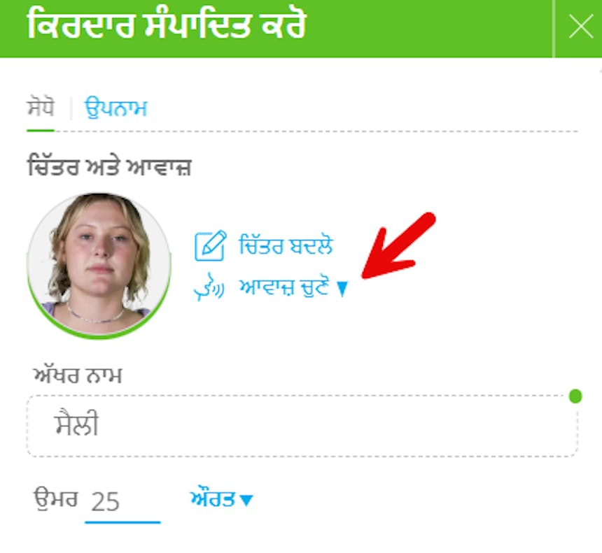 1. ਅੱਖਰ ਦੀ ਆਵਾਜ਼ ਚੁਣੋ